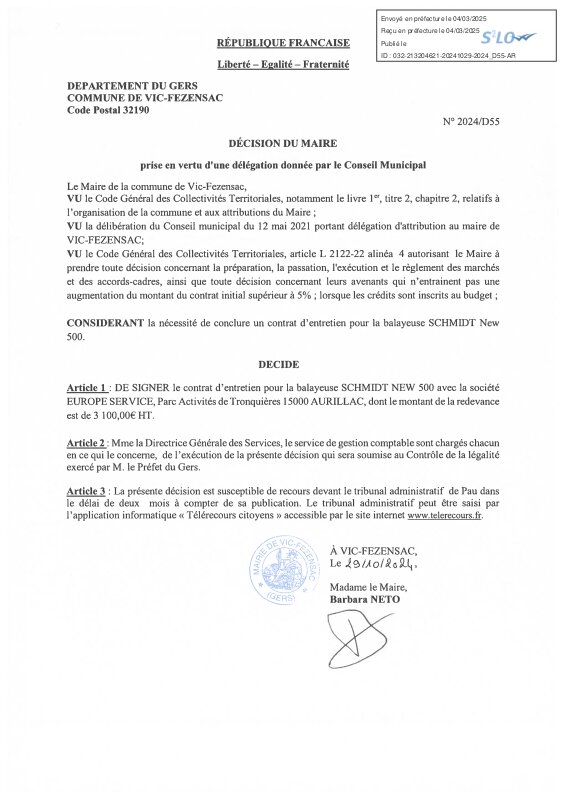 2024 D55 Visé Contrat D'Entretien Balayeuse Schmidt