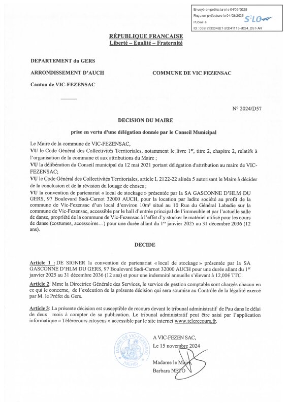 2024 D57 Visé Convention De Partenariat Local De Stockage Rue Gnl Labadie Avec Sa Gascogne D'Hlm Du Gers