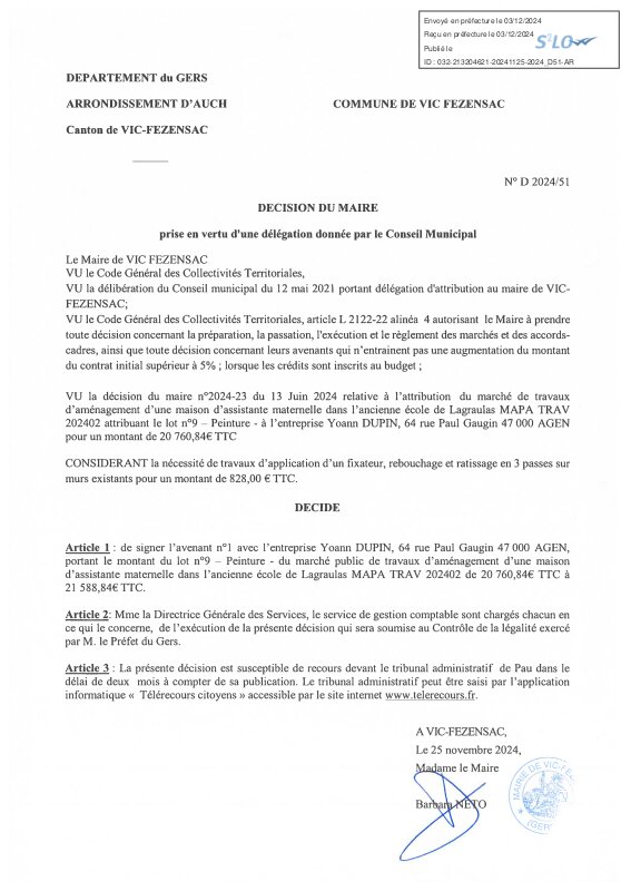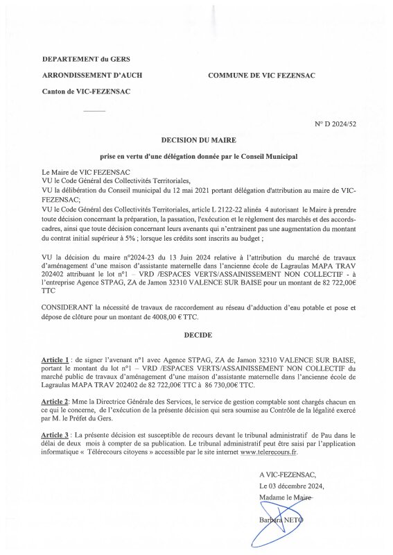 2024 D52 - Avenant 1 Agence STPAG MAM Lagraulas