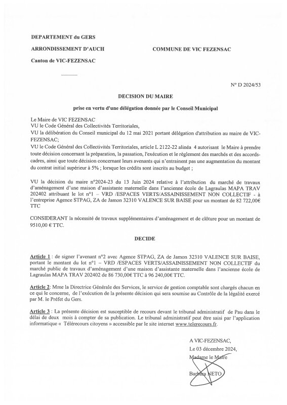 2024 D53 - Avenant 2 Agence STPAG MAM Lagraulas