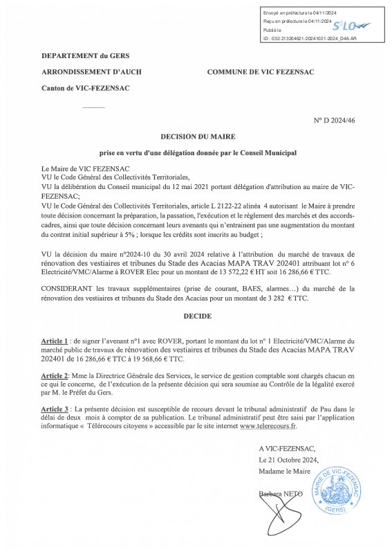 2024 D46 Vise Avenant N°1 Lot 6 Stade De Foot