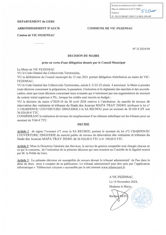 2024 D49 Visé Avenant N°1 Rechou Stade De Foot