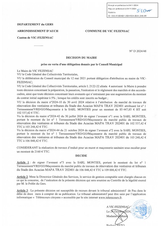 2024 D48 Visé Avenant N°3 Lot 1 Stade De Foot