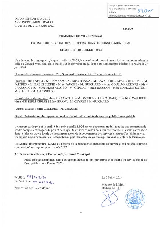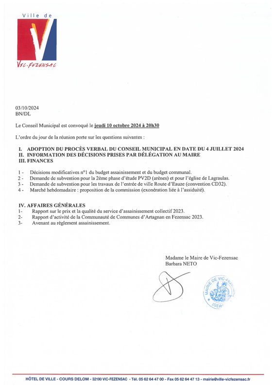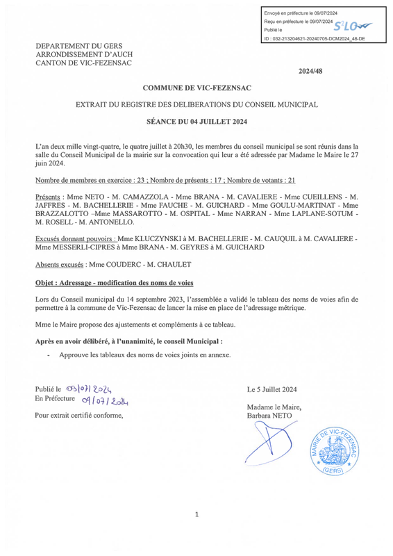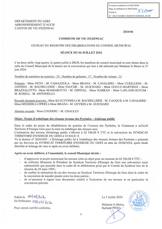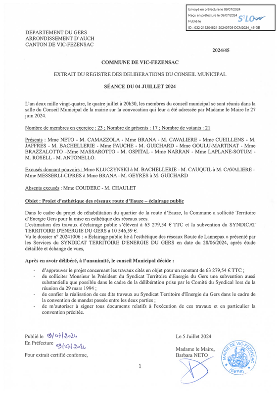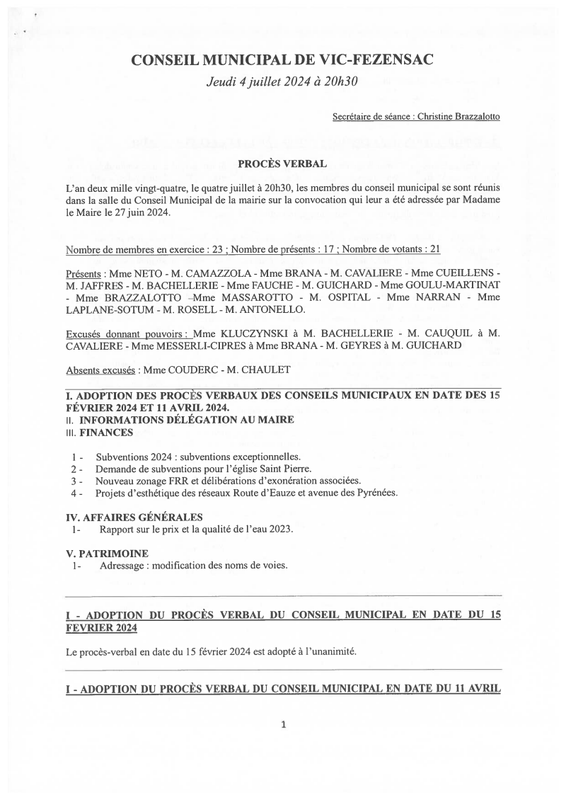 Procès verbal du Conseil municipal du 4 juillet 2024