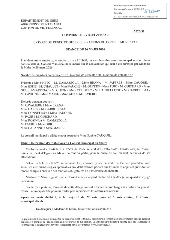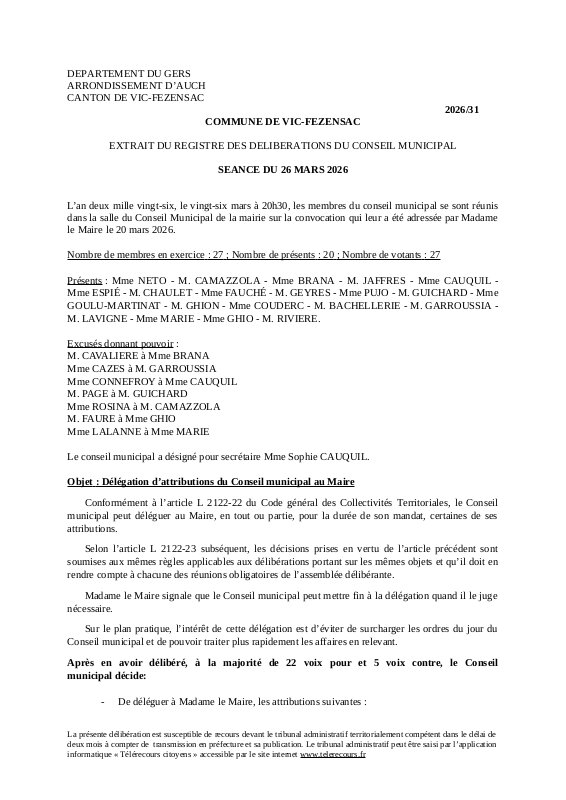 Dcm 2026 31 Délégation D'Attributions Du Conseil Municipal Au Maire