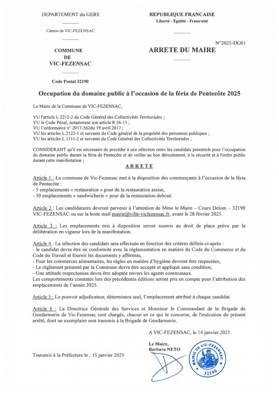 2025-01-15 - Occupation du domaine public à l'occasion de la féria de Pentecôte 2025