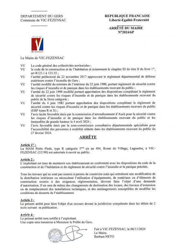 2024-6P Ouverture ERP Maison d'assistant(es) maternel(les) Petits Pieds à Lagraulas