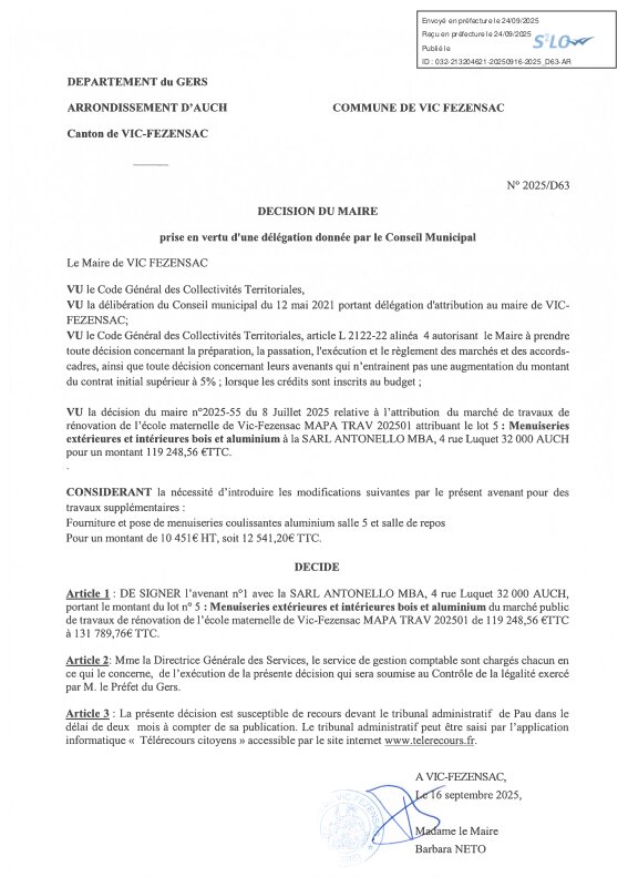 2025 D63 Visé Avenant N°1 Sarl Antonello Mba