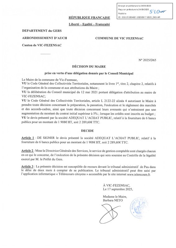 2025 D65 Visé Devis Fourniture De Bancs