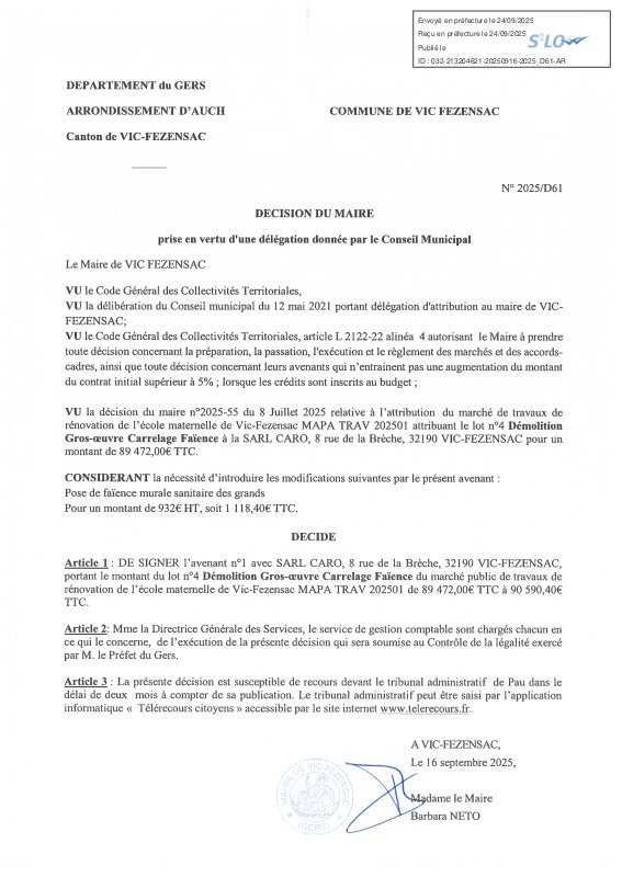 2025 D61 Visé Avenant N°1 Sarl Caro