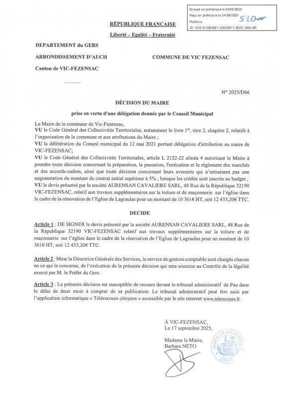 2025 D66 Visé Devis Aurensan Pour Église