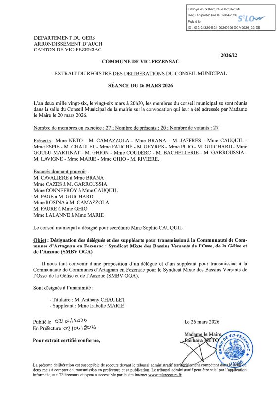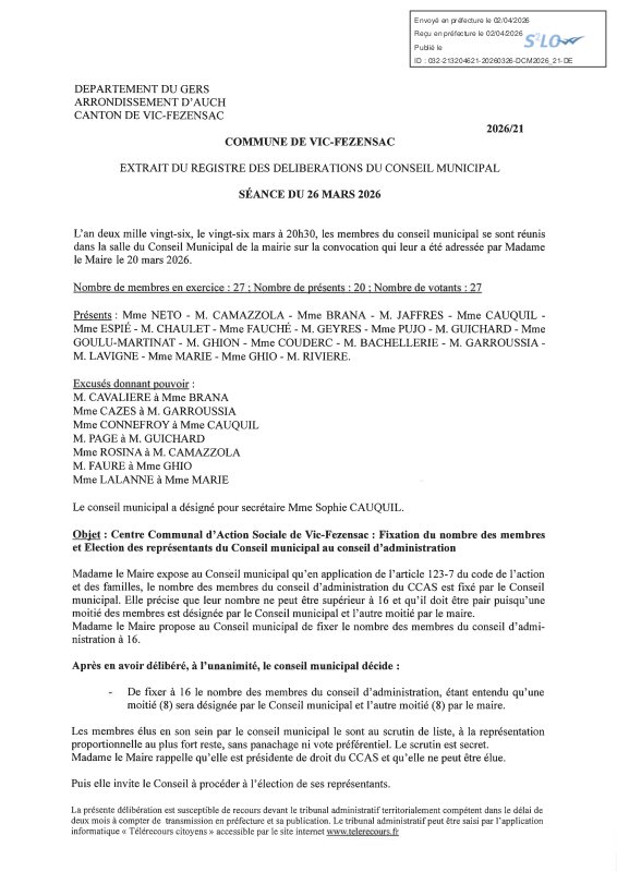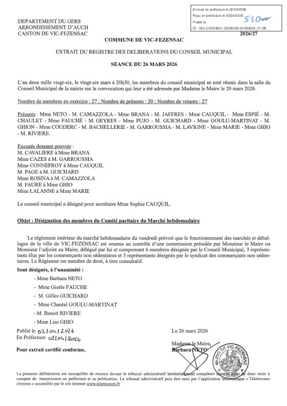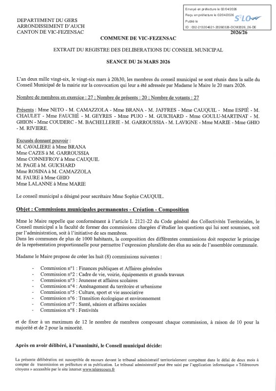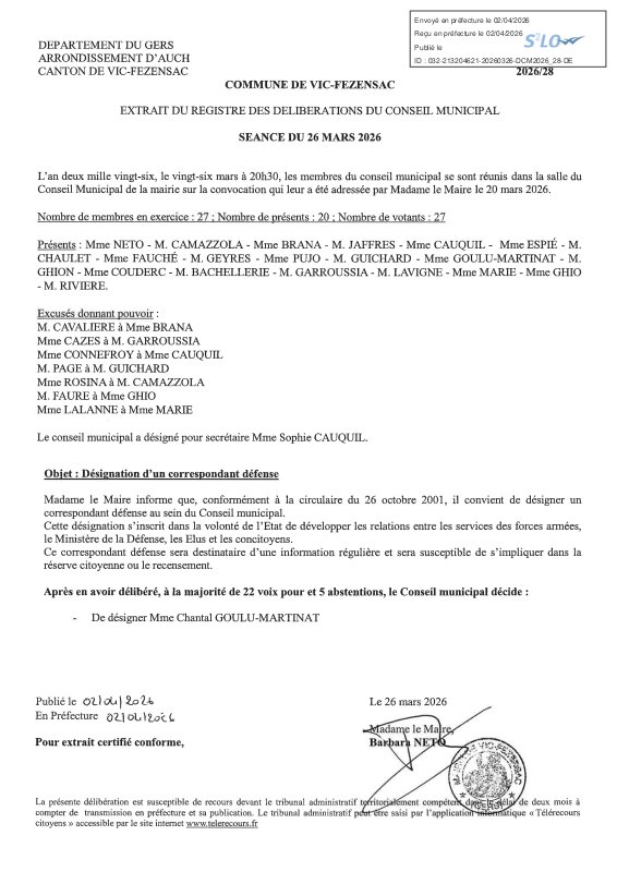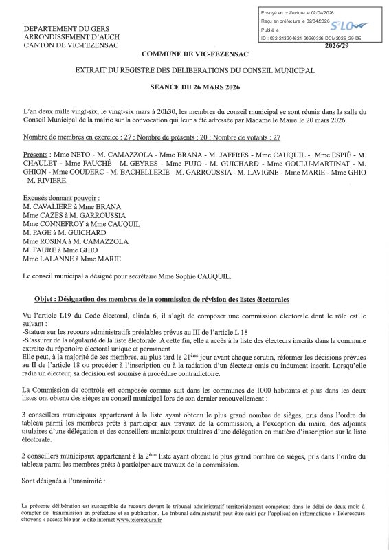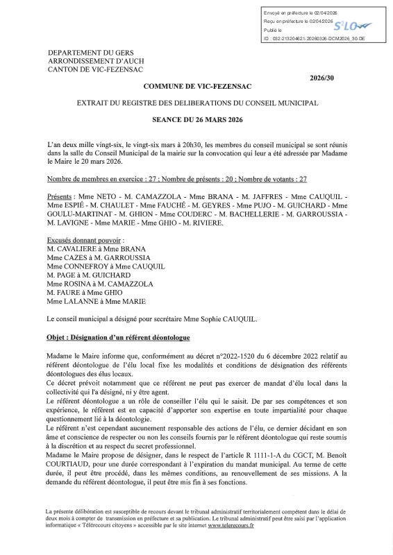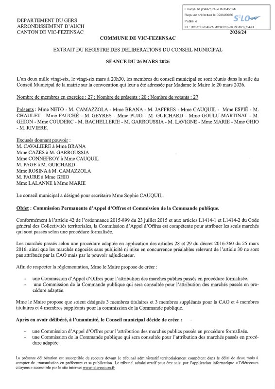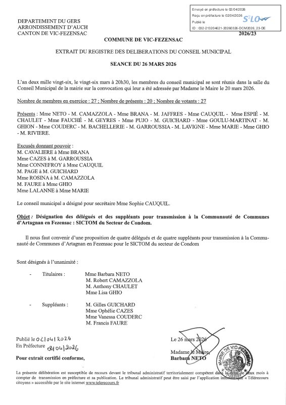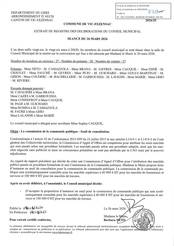 Panneau d'affichage numérique des actes administratifs de la commune de Vic-Fezensac