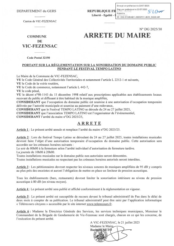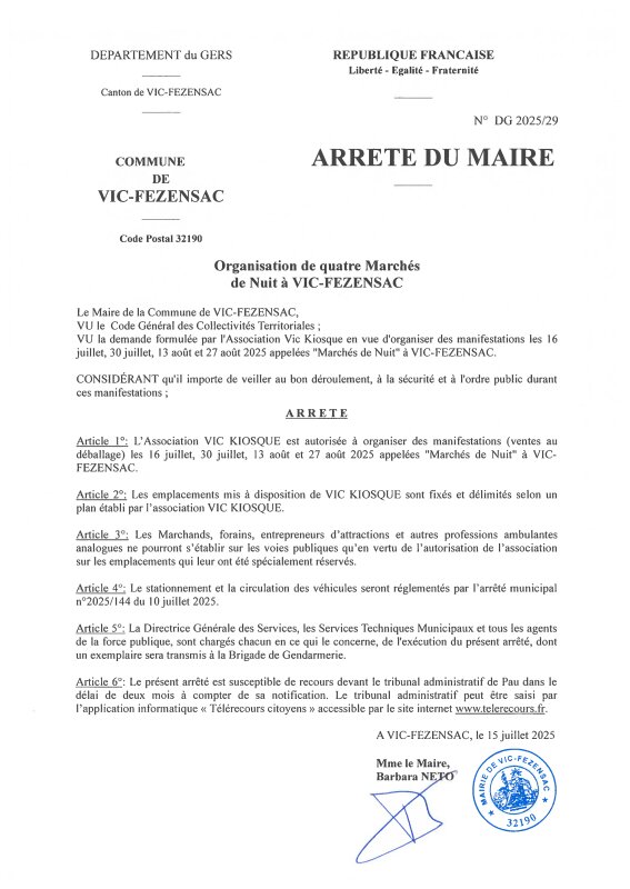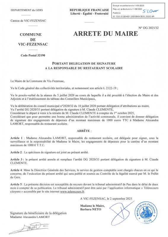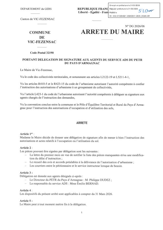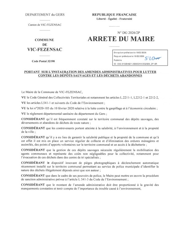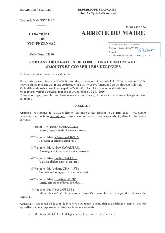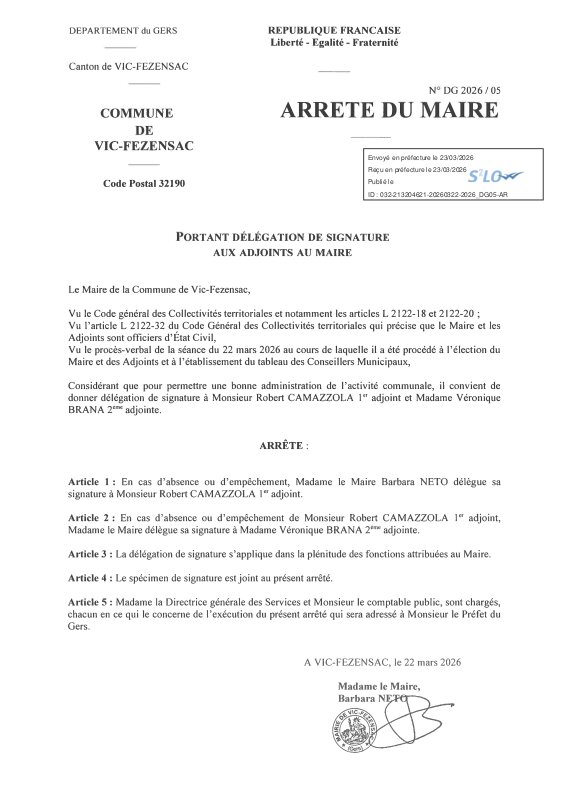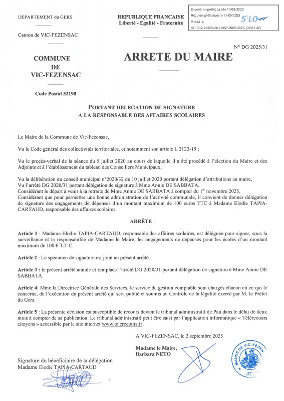 Panneau d'affichage numérique des actes administratifs de la commune de Vic-Fezensac