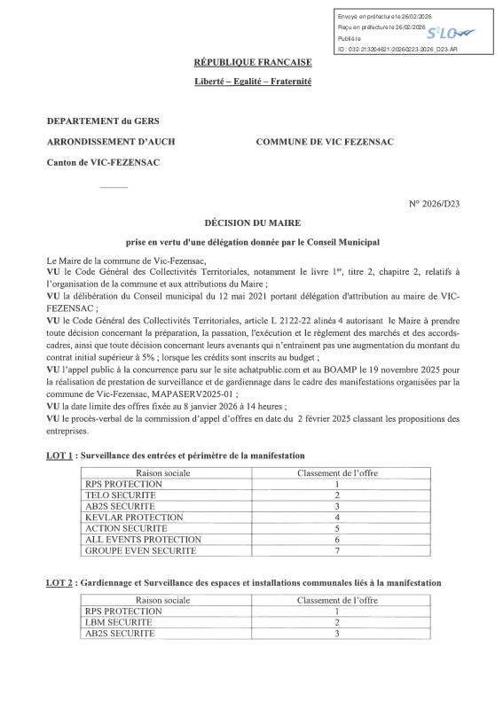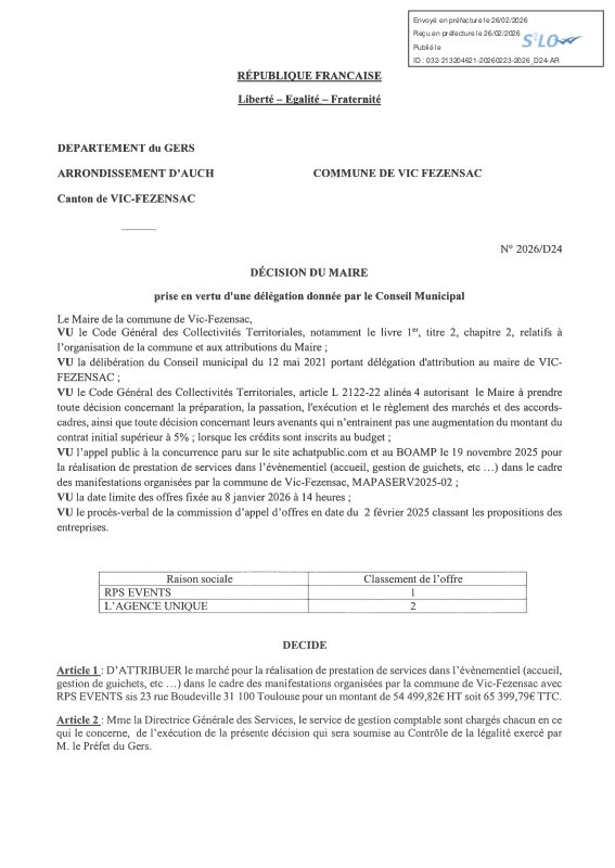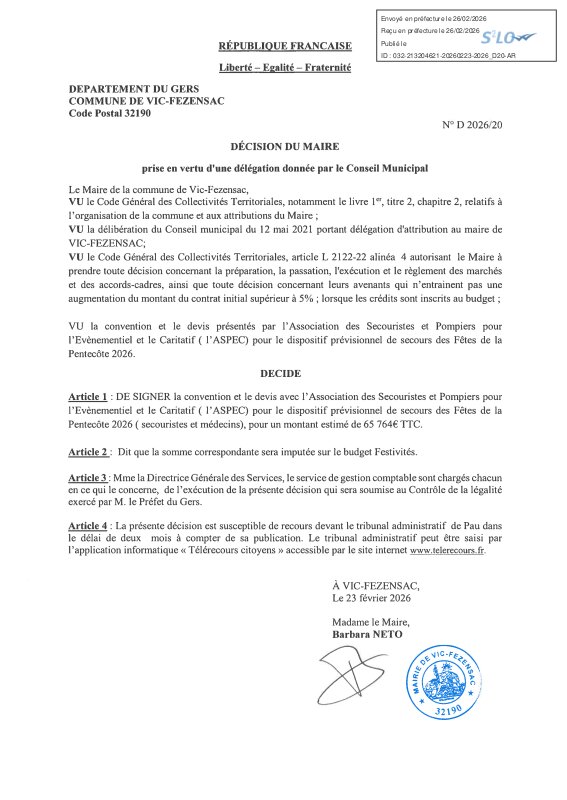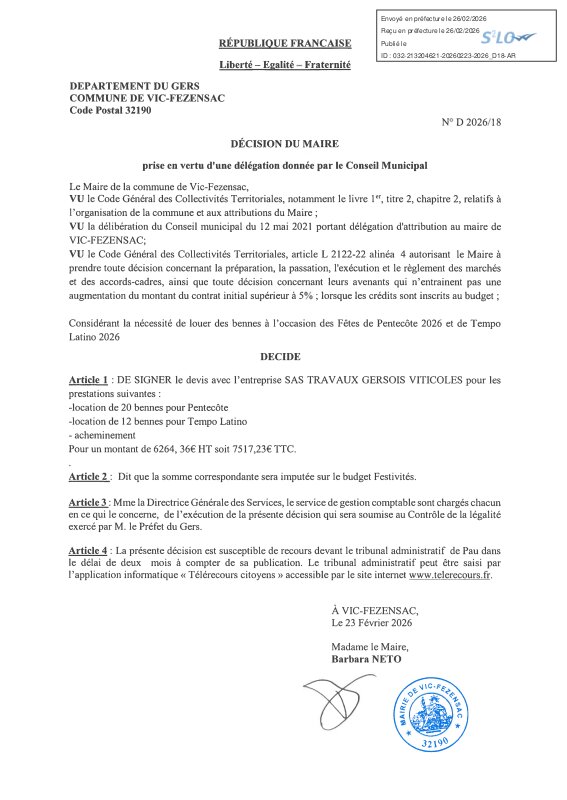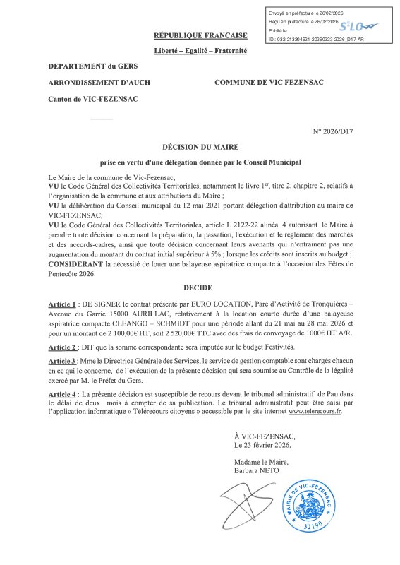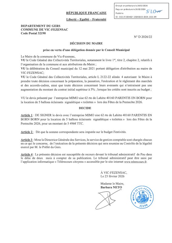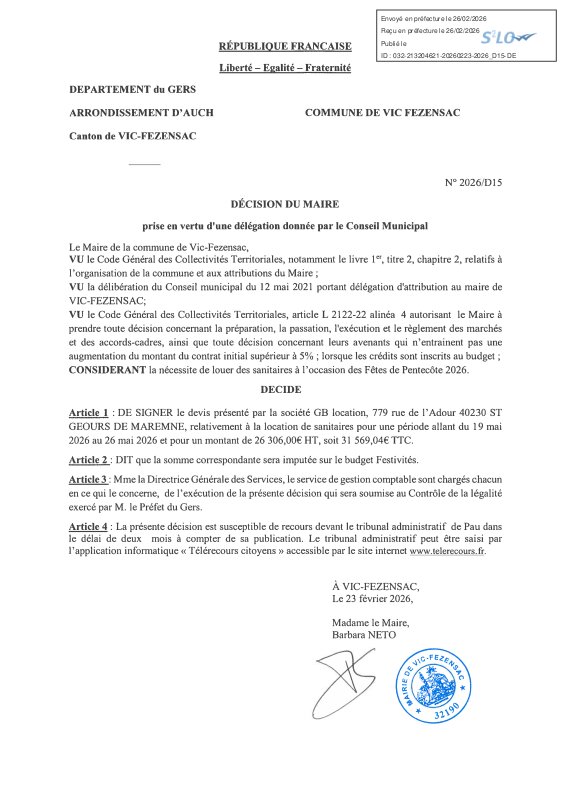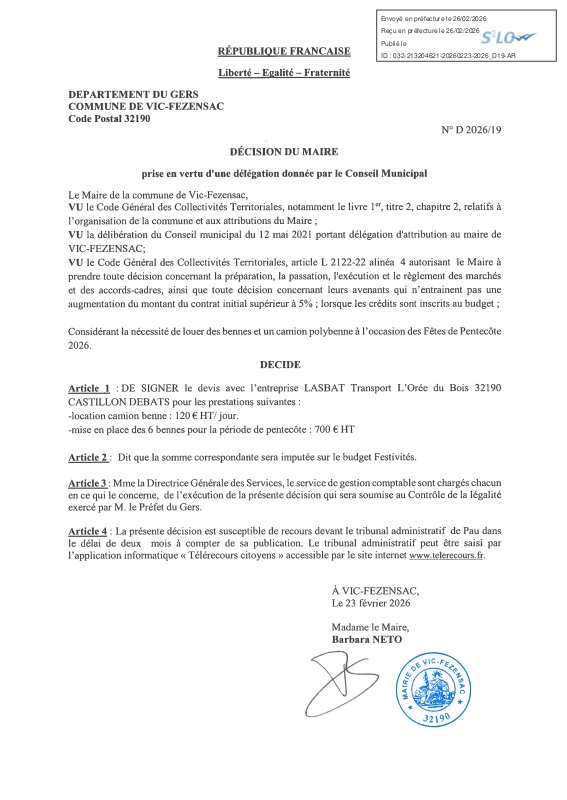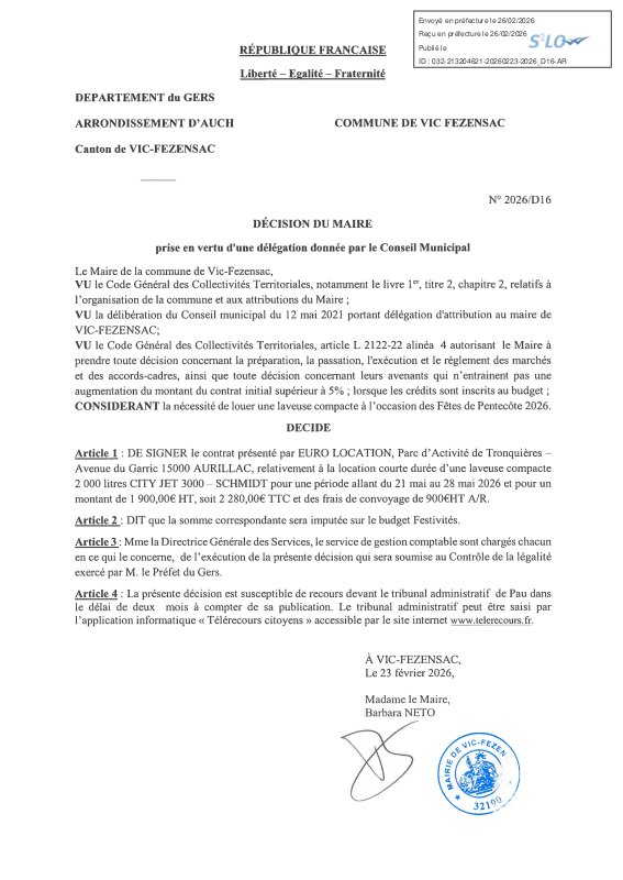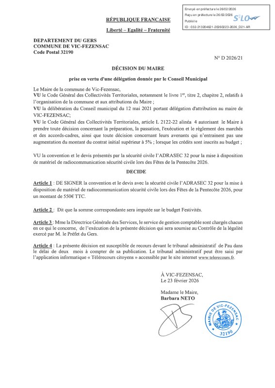 Panneau d'affichage numérique des actes administratifs de la commune de Vic-Fezensac