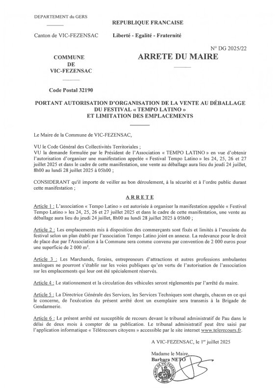 Tempo Latino 2025 : Arrêté interdiction de vente au déballage