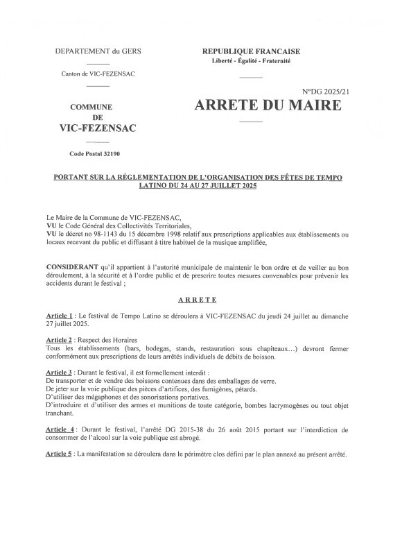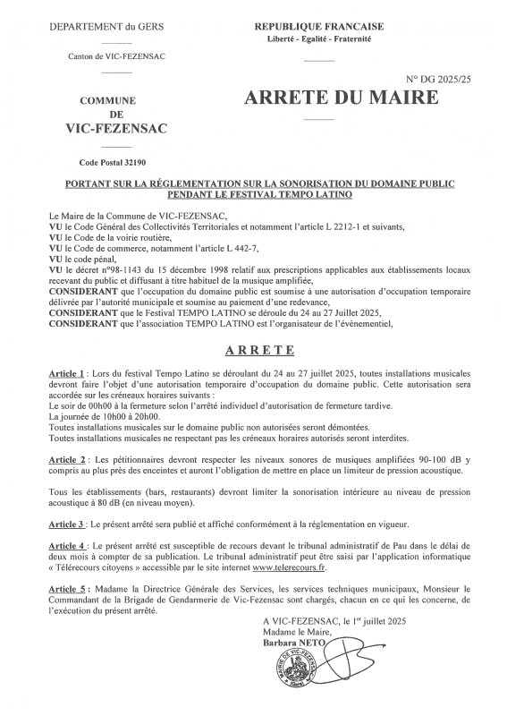 Tempo Latino 2025 : Arrêté Réglementation Fête
