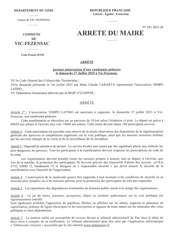 Tempo Latino 2025 : Arrêté Randonnée Pédestre