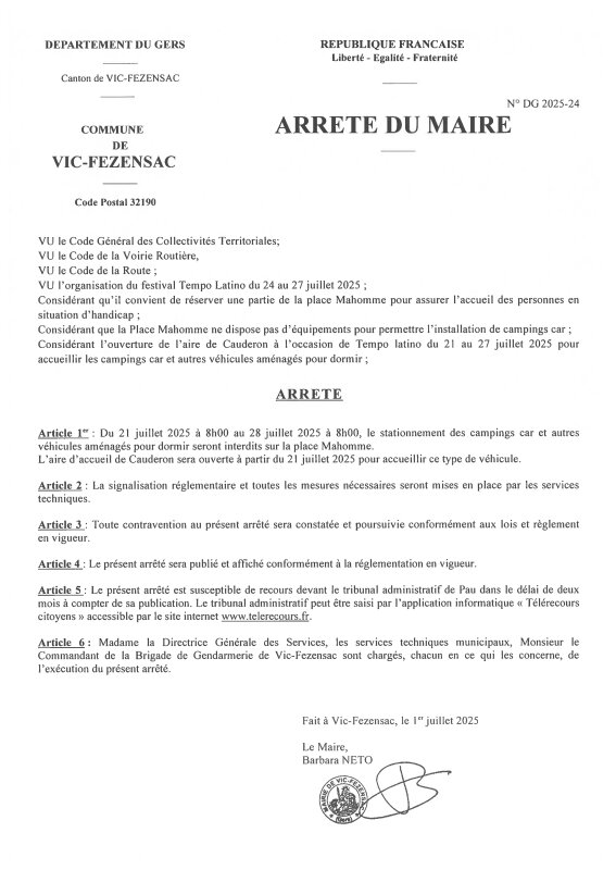 Tempo Latino 2025 : Arrêté interdiction stationnement des campings-car sur la place Mahomme