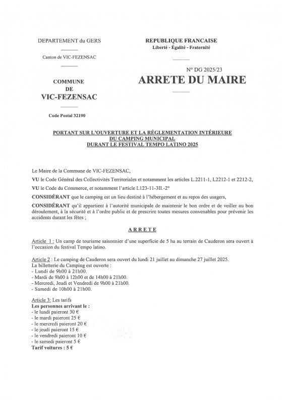 Tempo Latino 2025 : Arrêté Camping de Cauderon