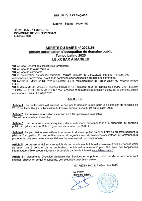 05-12-2025 - Arrêté n°2025/241 - Occupation du domaine public TEMPO LATINO
